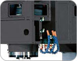 All three axes have a hardened box-way design. In addition, the spindle headstock, column,saddle, base, and table are all made